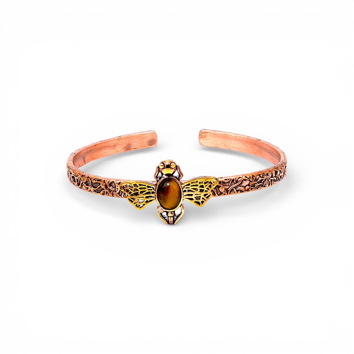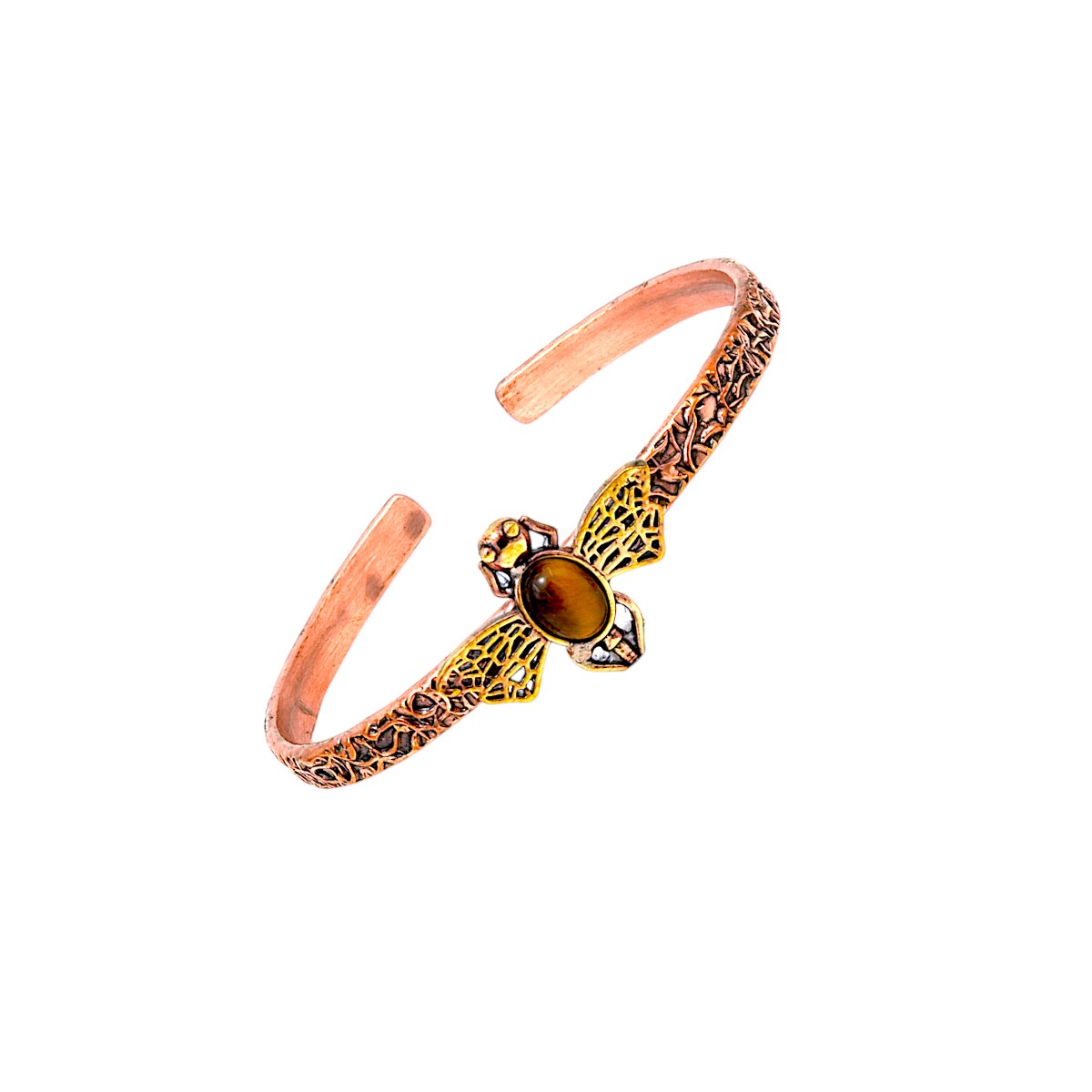 Kaplangözü Doğal Taş Yusufçuk Bakır Bileklik, taşın kendine özgü ışık yansımalarıyla güçlü ve dikkat çekici bir görünüm sunar. Kahverengi ve altın tonlarının hareketli geçişleri bakırın sıcak dokusuyla birleşerek bileklikte dinamik bir stil oluşturur. Yusufçuk figürü değişimi ve hafifliği simgelerken tasarıma zarif bir anlam kazandırır. El işçiliği detayları ürünü özel kılar ve otantik bir karakter kazandırır. Günlük kombinlerde fark yaratan bir tamamlayıcı olurken özel günlerde iddialı bir aksesuar olarak tercih edilir. Ayarlanabilir yapısı sayesinde konforlu bir kullanım sunar. Müşterilerinize doğal taşın enerjisini ve bakırın zarafetini sunarak benzersiz bir deneyim yaşatın.