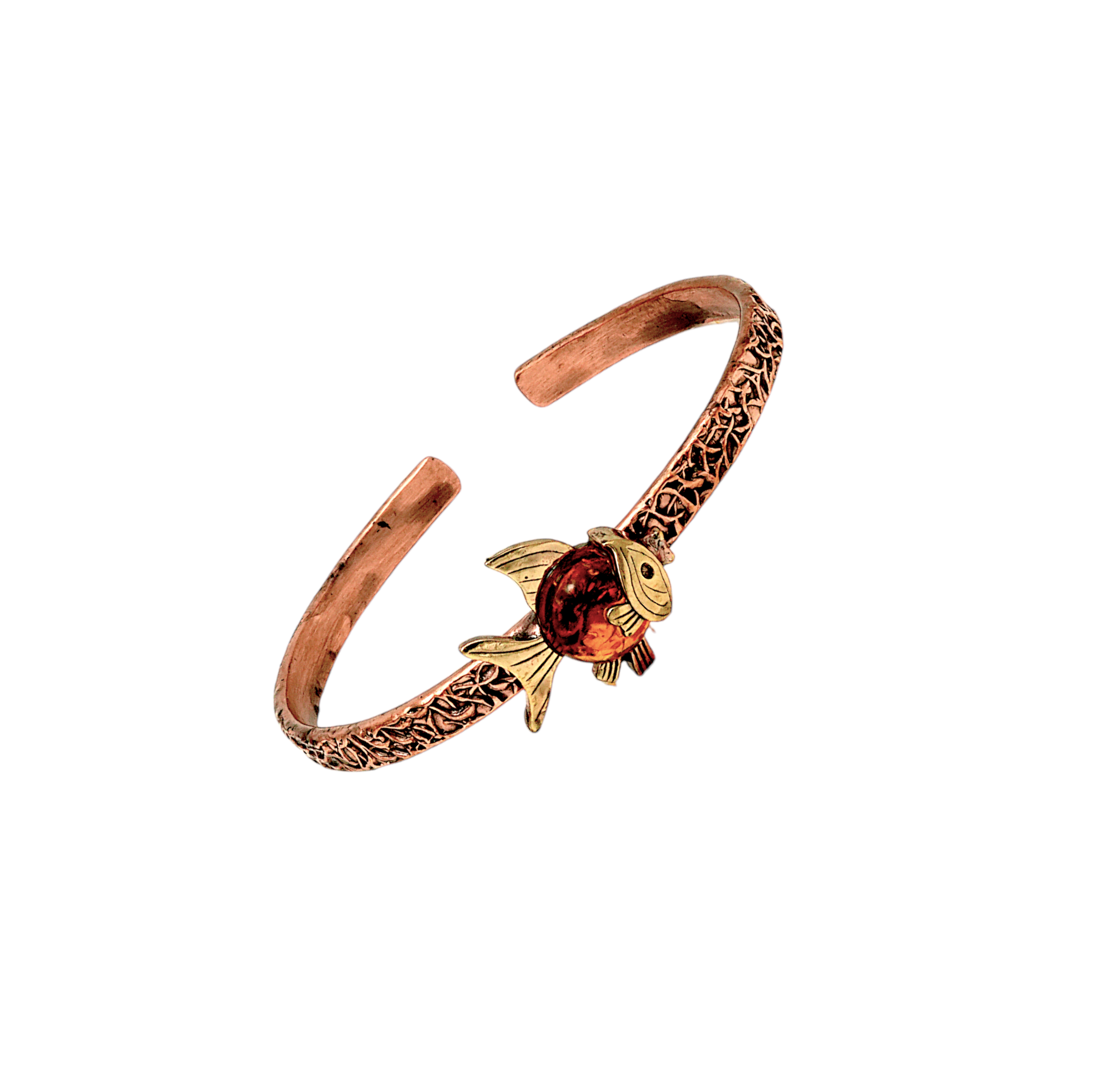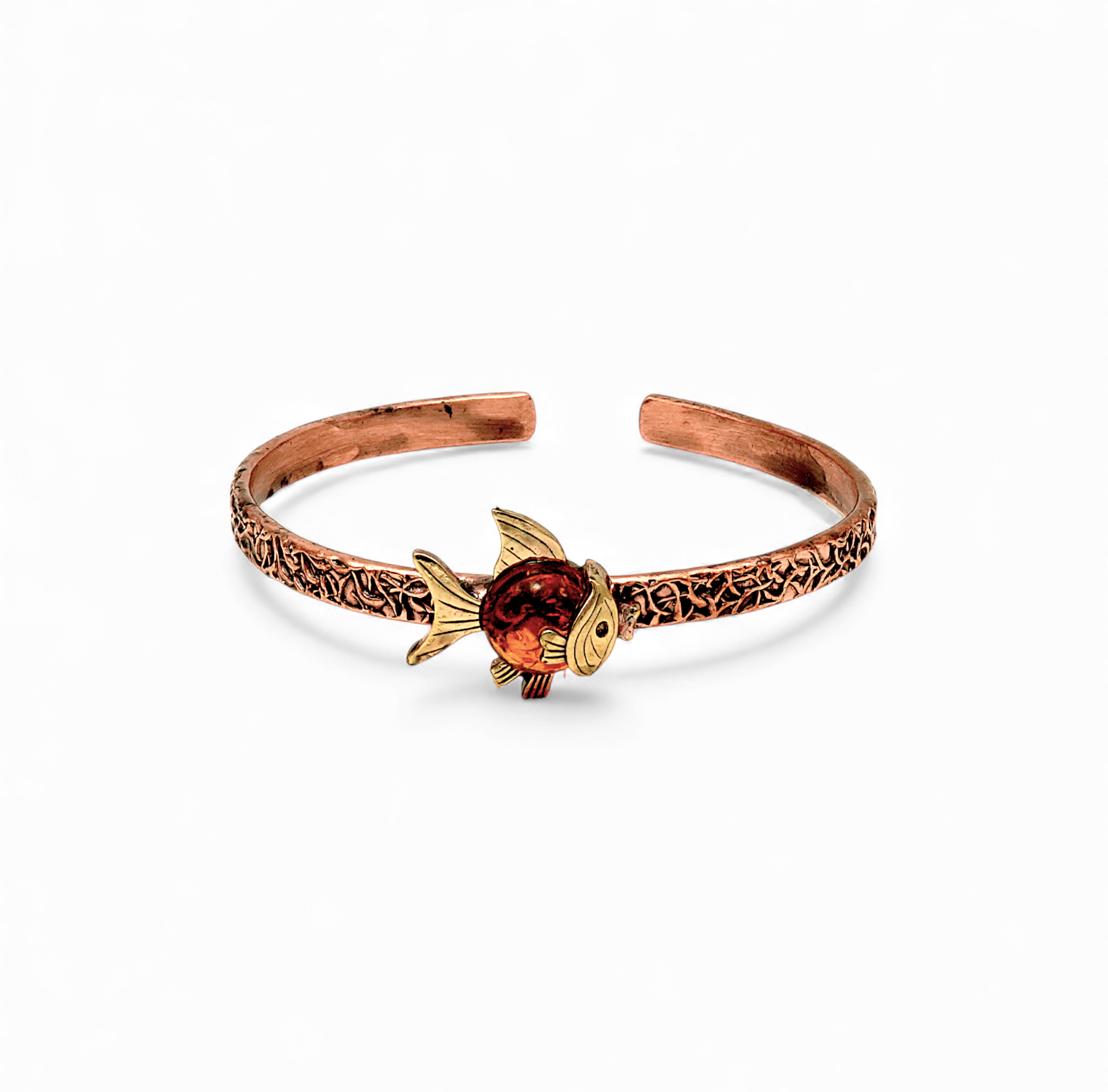 Kehribar’ın binlerce yıllık doğal oluşumuyla taşıdığı sıcak, arındırıcı ve iyileştirici enerji; balık figürünün akışkan ve özgür ruhuyla birleşerek benzersiz bir bileklik ortaya çıkarır. El işçiliği bakır bileklik, kehribarın sıcak tonlarını öne çıkaran doğal bir ışıltı sunar. Kehribar; negatif enerjiyi dönüştüren, sakinlik veren ve bedensel-ruhsal iyileşmeyi destekleyen bir taştır. Balık figürü ise özgürlüğü, sezgileri ve yaşamın doğal akışını simgeler. Bir araya geldiklerinde bileklik hem ruhu ısıtan hem de stil katan özel bir enerji taşır. Doğal taş sevenler için sade ama etkili bir modeldir. Müşterilerinize doğal taşın enerjisini ve bakırın zarafetini sunarak benzersiz bir deneyim yaşatın.