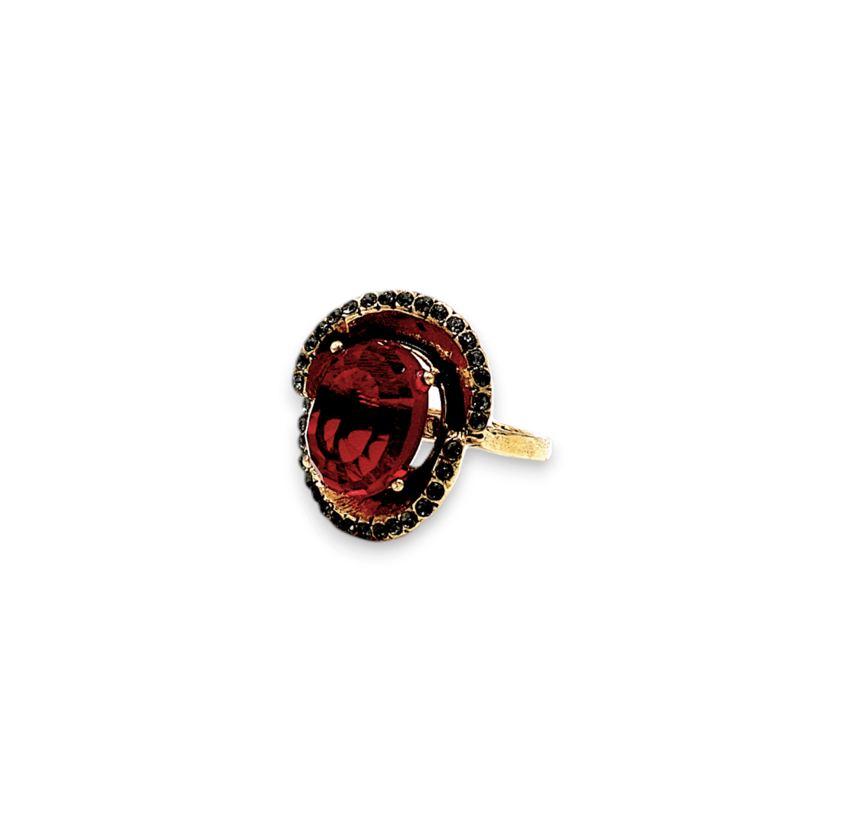 Kırmızı Kedi Gözü Otantik İşlemeli Bronz Yüzük