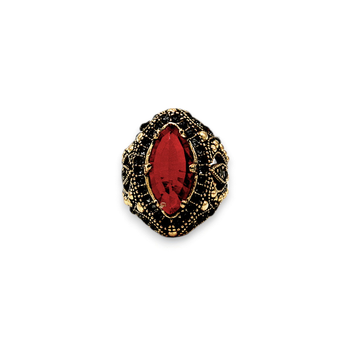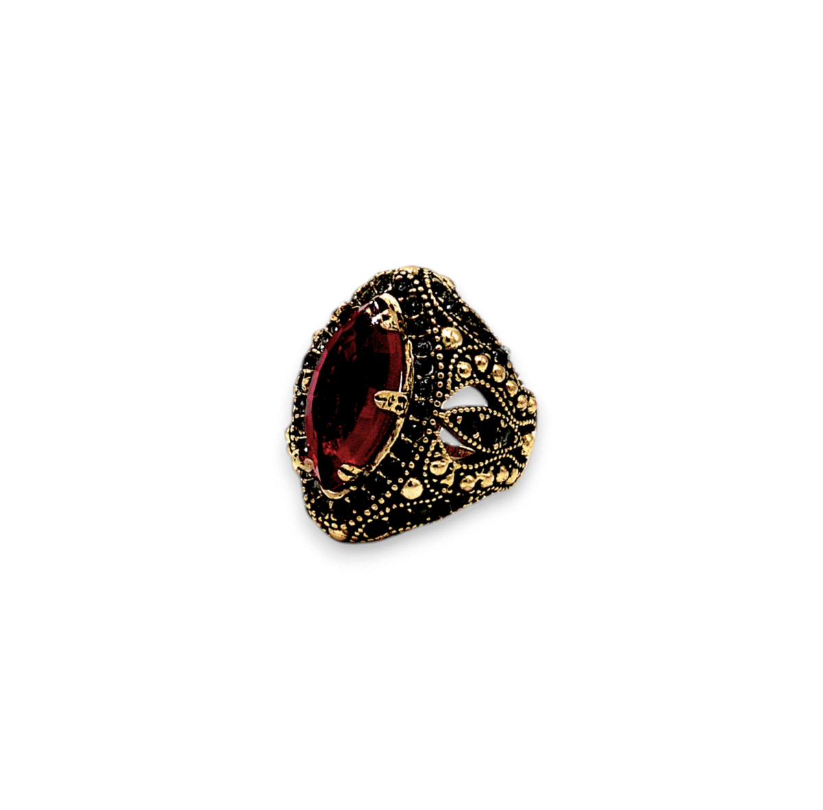 Kırmızı Kedi Gözü Otantik İşlemeli Bronz Yüzük