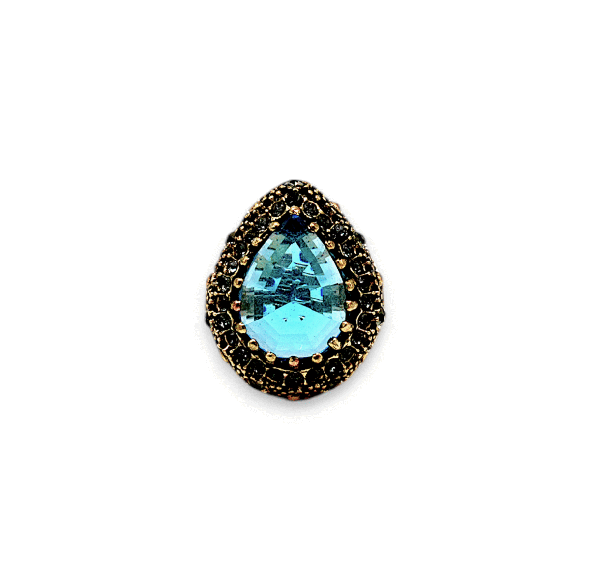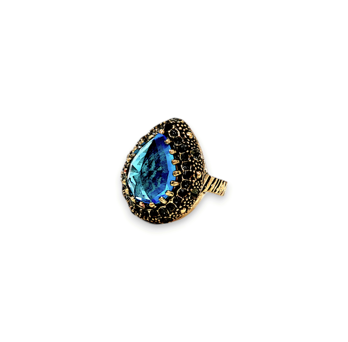 Mavi Kedi Gözü Otantik İşlemeli Bronz Yüzük