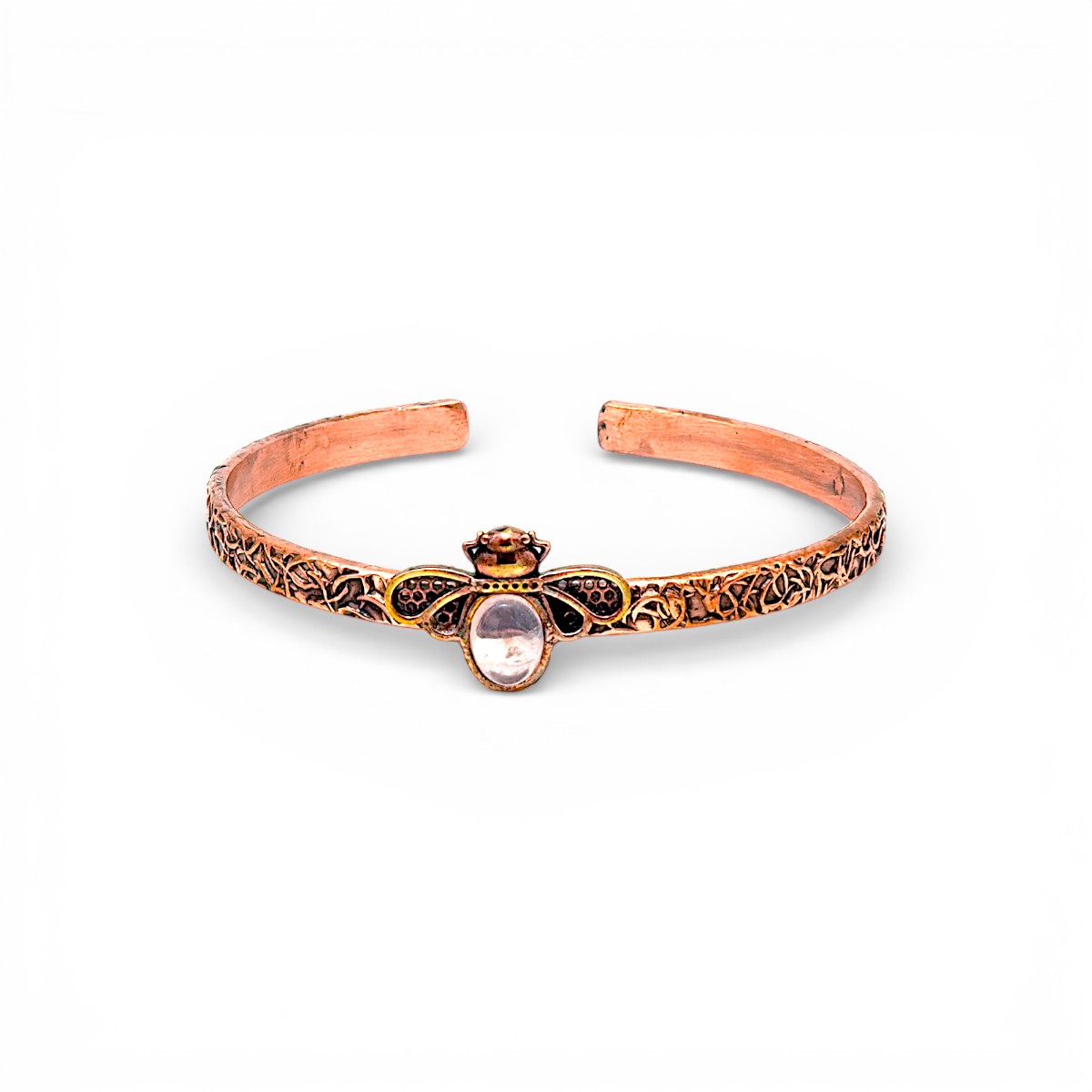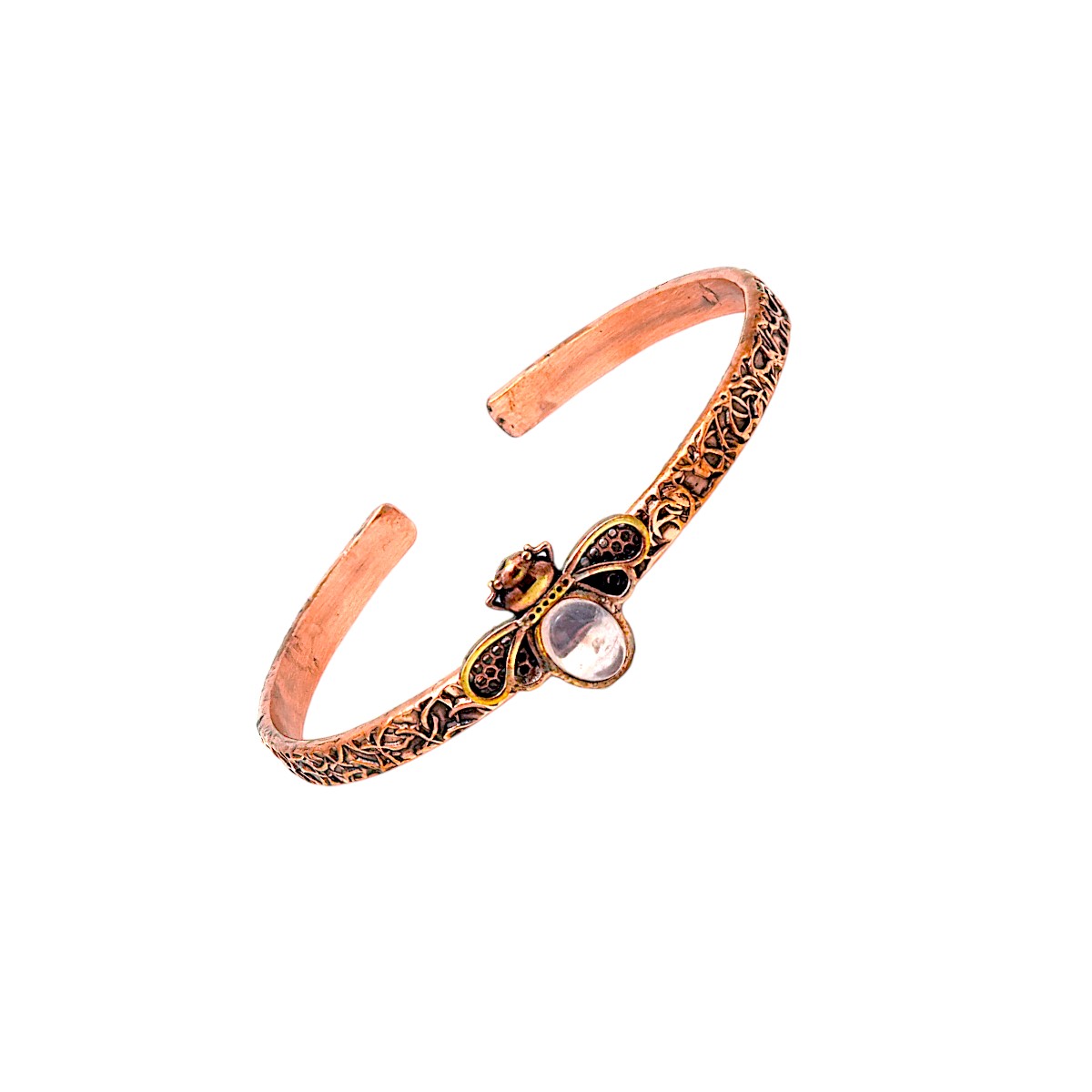 Pembe Kuvars Doğal Taş Arı Bakır Bileklik, taşın yumuşak ve romantik tonlarını arı figürünün enerjisiyle buluşturur. Pembe kuvarsın zarif görünümü bakırın sıcak dokusuyla uyum içinde birleşerek bileklikte hoş bir denge oluşturur. El işçiliğiyle hazırlanan detaylar tasarıma otantik bir hava kazandırır. Günlük kullanımda sade ama etkileyici bir tamamlayıcı olurken özel günlerde anlamlı bir hediye alternatifi olarak öne çıkar. Ayarlanabilir formu sayesinde konfor sunar. Müşterilerinize doğal taşın enerjisini ve bakırın zarafetini sunarak benzersiz bir deneyim yaşatın.