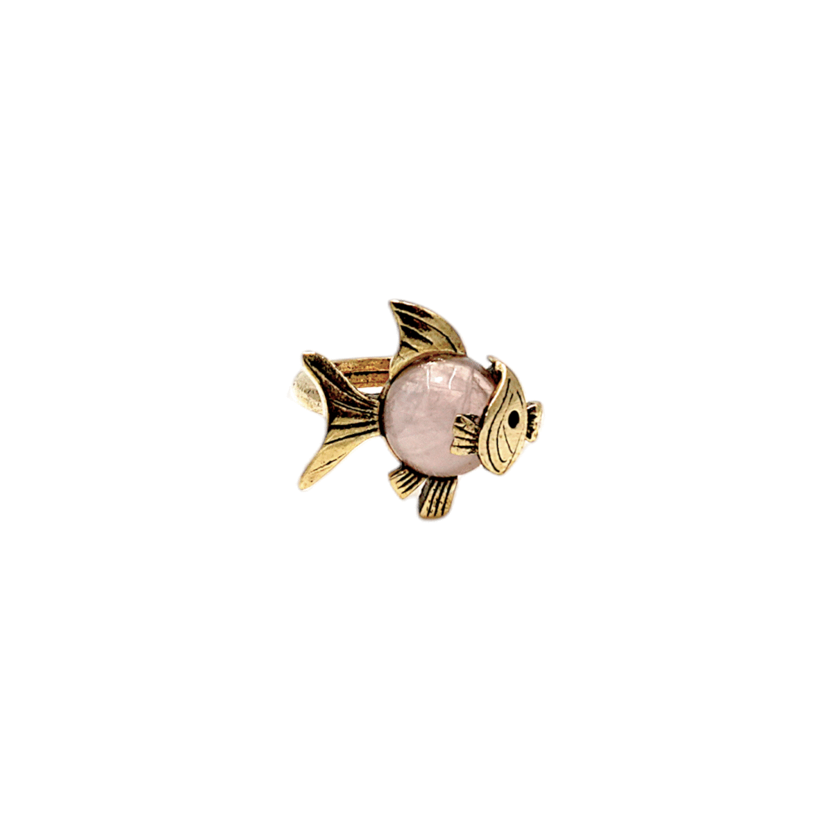 Pembe kuvarsın huzur ve sevgi dolu enerjisi, bronzun sağlamlığı ve balık figürünün zarif tasarımıyla buluşuyor! Kuyumcu işçiliğiyle özenle üretilen bu yüzük, ayarlanabilir yapısıyla her parmağa uyum sağlar. Estetiği ve dayanıklılığı bir arada sunan bu yüzük, koleksiyonunuza deniz esintili bir zarafet katar.