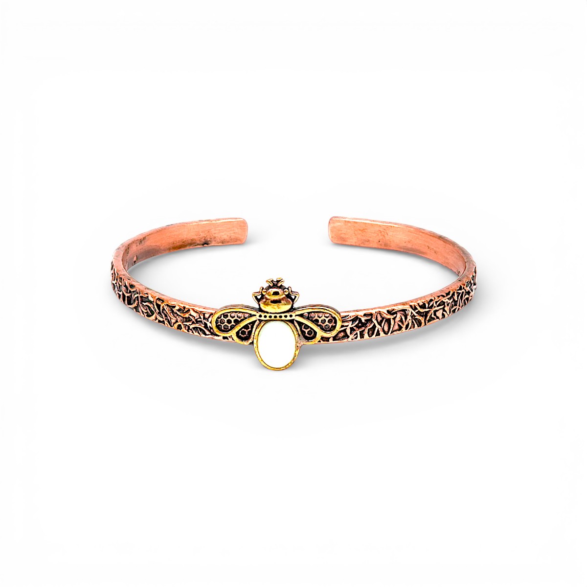 Sedef Doğal Taş Arı Bakır Bileklik, sedef taşının doğal ışıltısını arı figürünün zarif formuyla bir araya getirir. Taşın parlak ve yumuşak yüzeyi bakırın sıcak tonlarıyla birleşerek ferah bir görünüm oluşturur. El işçiliğiyle hazırlanan detaylar bilekliğe estetik bir dokunuş kazandırır. Günlük kullanımda hafif ve şık bir tamamlayıcı olurken özel günlerde zarif bir aksesuar olarak öne çıkar. Müşterilerinize doğal taşın enerjisini ve bakırın zarafetini sunarak benzersiz bir deneyim yaşatın.