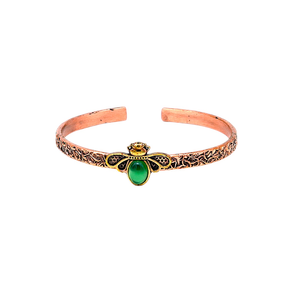 Yeşil Akik Doğal Taş Arı Bakır Bileklik, doğayı anımsatan yeşil tonlarıyla sakin ama dikkat çekici bir görünüm sunar. Yeşil akik taşının doğal dokusu bakırın otantik yapısıyla birleşerek dengeli bir estetik oluşturur. Arı figürü tasarıma anlam ve hareket katarken el işçiliği detaylar ürünü özel kılar. Günlük stilinize doğal bir dokunuş eklerken özel anlarda zarif bir aksesuar olarak tercih edilebilir. Ayarlanabilir yapısı sayesinde rahat bir kullanım sağlar. Müşterilerinize doğal taşın enerjisini ve bakırın zarafetini sunarak benzersiz bir deneyim yaşatın.