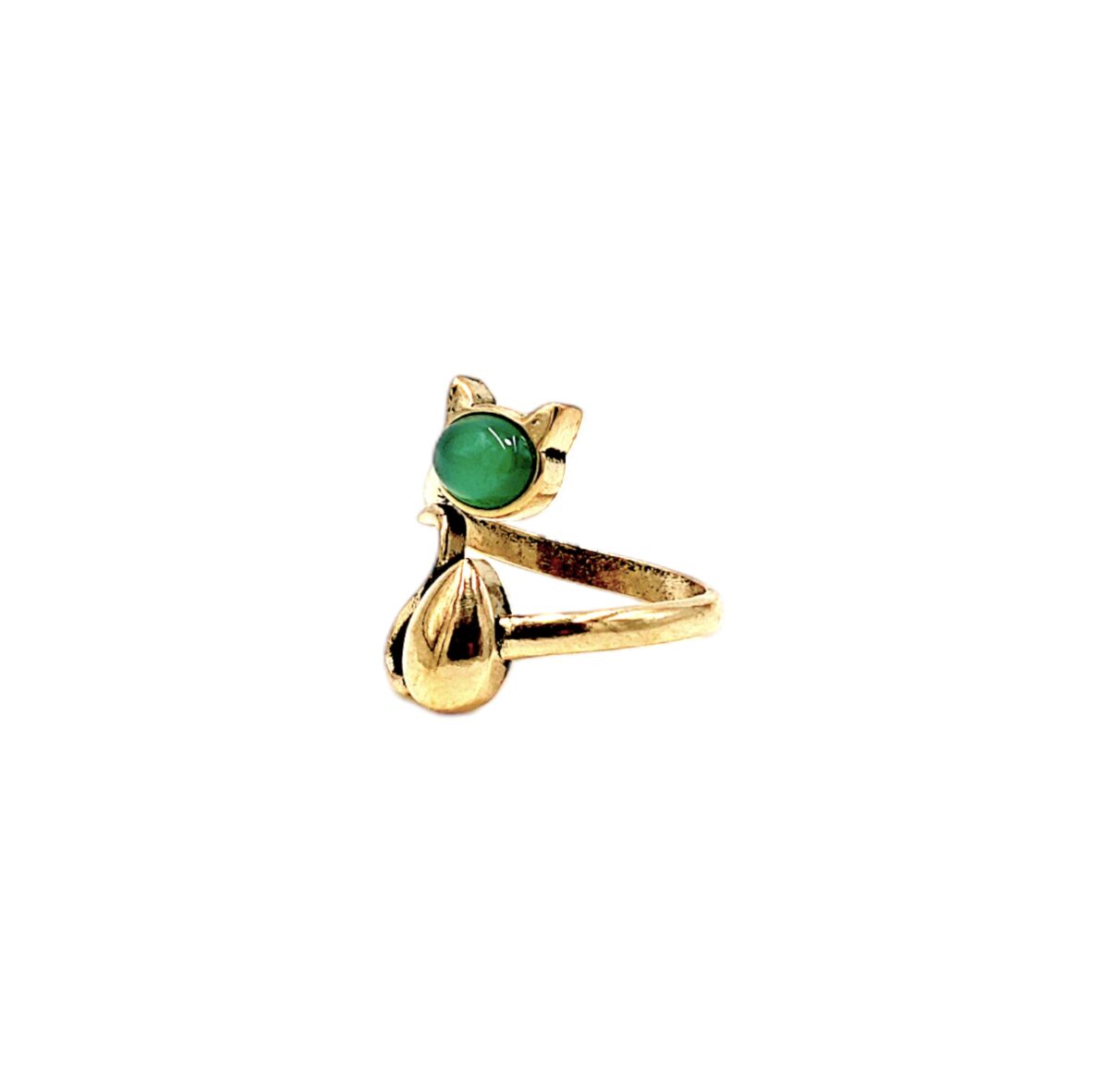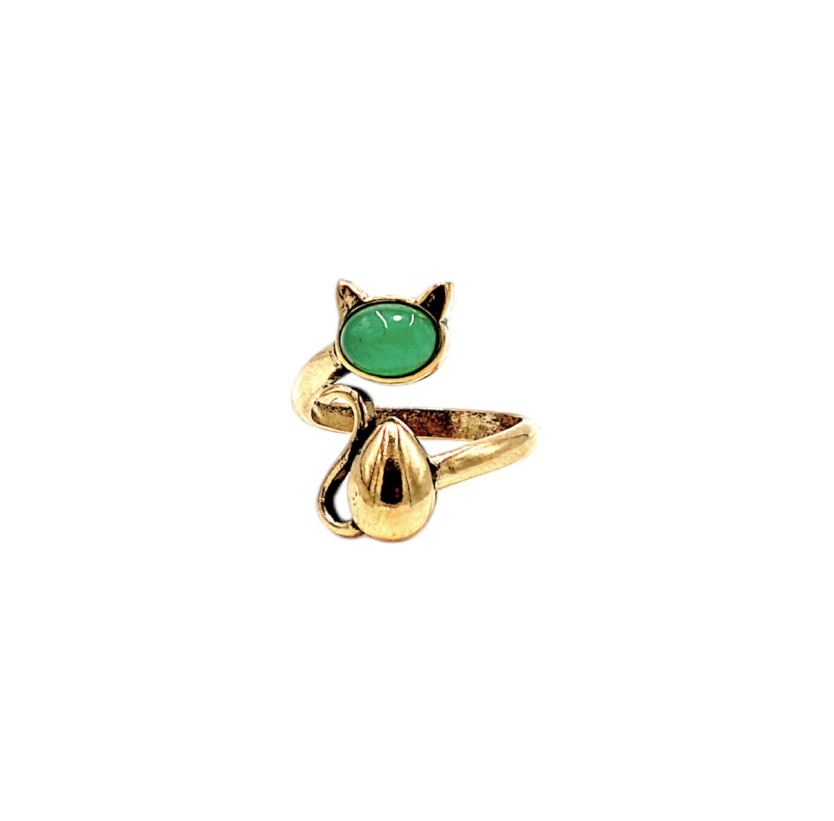 Yeşil Akik Doğal Taş Kedi Bronz Yüzük