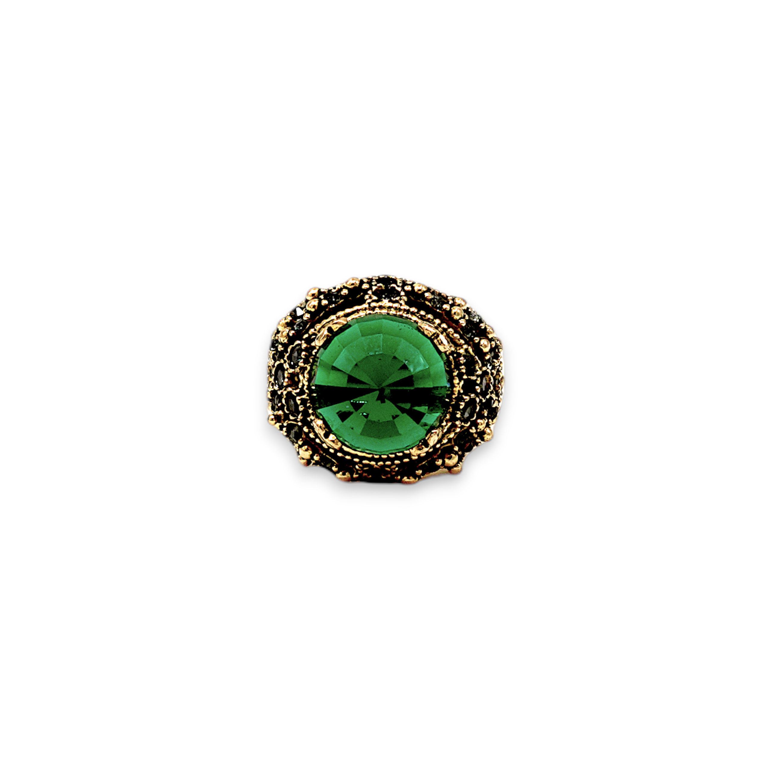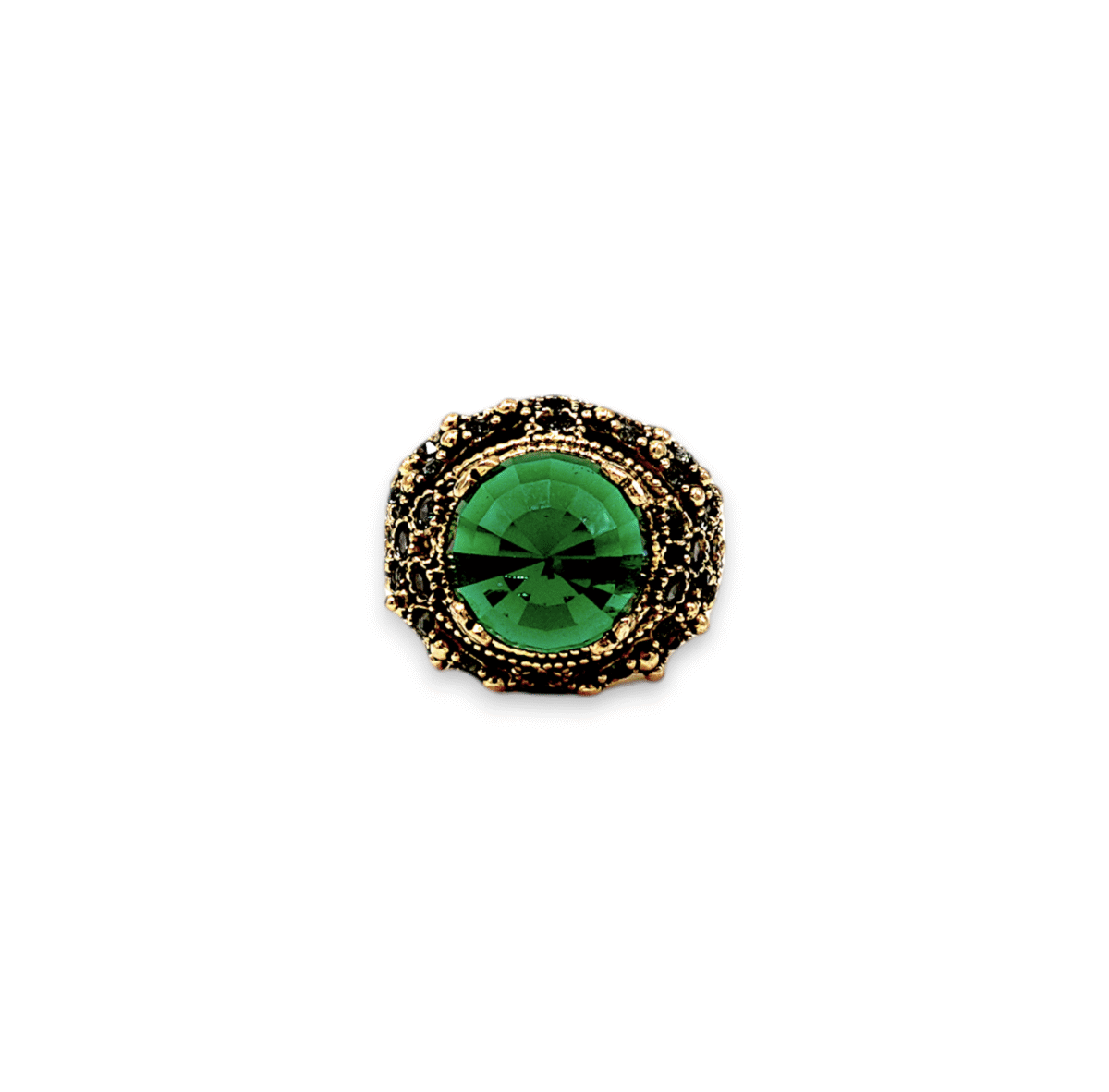 Yeşil Kedi Gözü Otantik İşlemeli Bronz Yüzük
